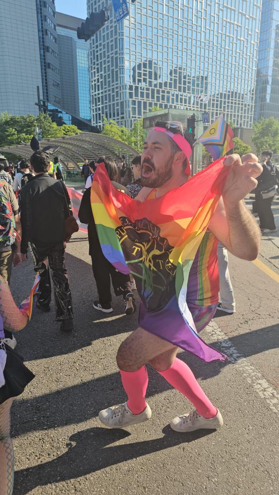 • After the mingle, the group joined the vibrant Seoul Pride Parade, marching through Itaewon and soaking in the electric atmosphere of celebration and solidarity.